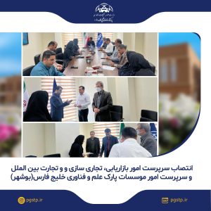 به گزارش روابط عمومی پارک علم و فناوری خلیج فارس (بوشهر)، ابوالحسن رزمینیا رئیس پارک علم و فناوری خلیج فارس با صدور احکامی جداگانه، حمید باشی را به سمت سرپرست امور بازاریابی، تجاری سازی و تجارت بین الملل پارک و مونا صادقی را به سمت سرپرست امور مؤسسات پارک منصوب کرد.