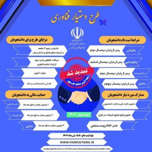 برای ثبت نام و اطلاعات بیشتر طرح، به سامانه www.PARKINTERN.ir مراجعه کنید.