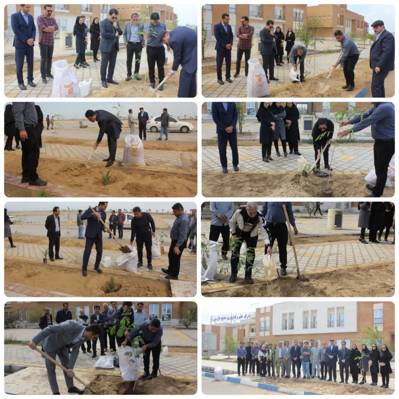همزمان با هفته درختکاری، کاشت نهال و طرح هر شرکت فناور یک درخت در طرح جامع عمرانی پارک علم و فناوری خلیج فارس(بوشهر) با حضور رییس، معاونین و پرسنل پارک علم و فناوری و شرکت های مستقر آغاز شد.