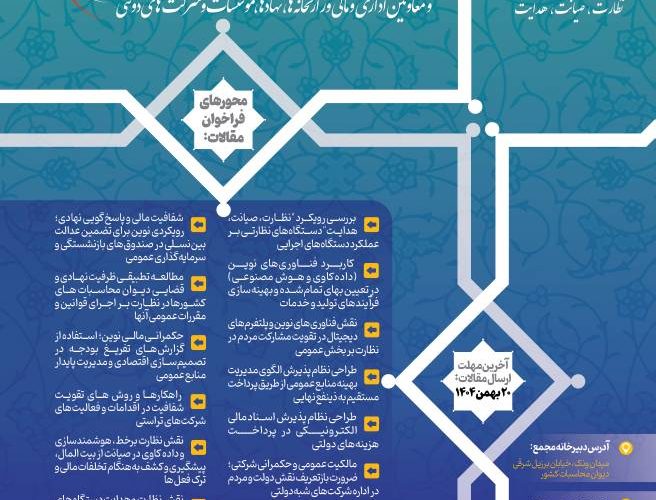 فراخوان ارائه مقاله به ششمین مجمع ملی دیوان محاسبات کشور و معاونین اداری و مالی وزارتخانهها، نهادها، موسسات و شرکتهای دولتیروابط عمومی پارک علم و فناوری خلیج فارس1404-11-01